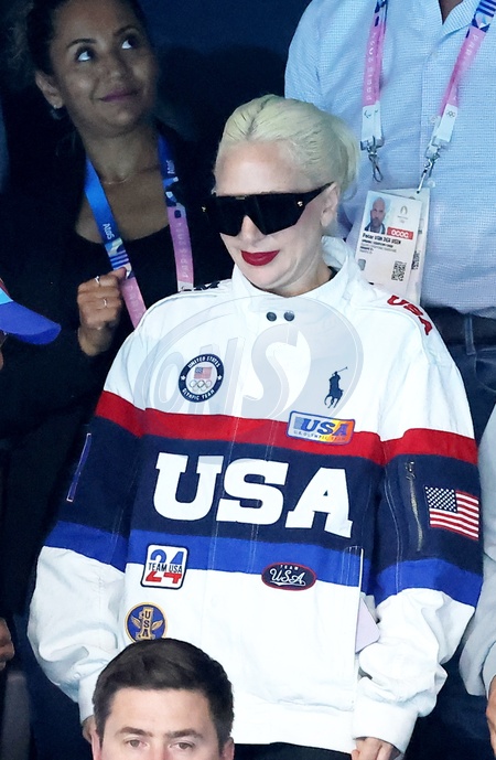 Lady Gaga et son fiancé Michael Polansky assistent à la victoire de Léon Marchand sur 400 m 4 nage lors des Jeux Olympiques de Paris 2024 (JO) à Paris La Defense Arena à Nanterre