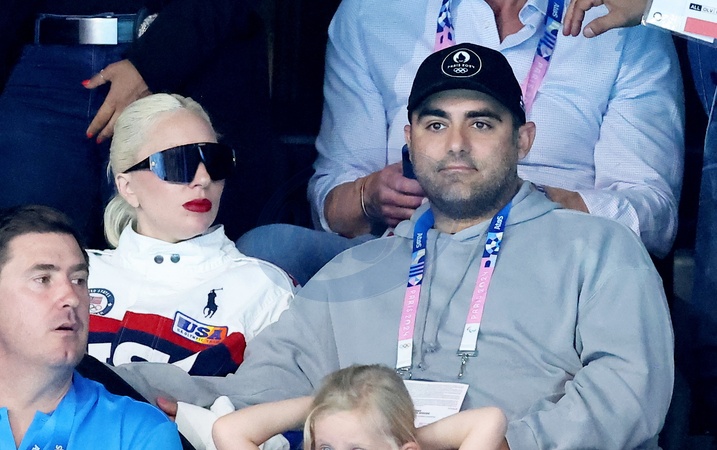 Lady Gaga et son fiancé Michael Polansky assistent à la victoire de Léon Marchand sur 400 m 4 nage lors des Jeux Olympiques de Paris 2024 (JO) à Paris La Defense Arena à Nanterre