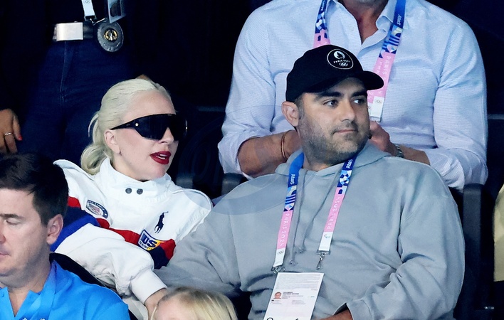 Lady Gaga et son fiancé Michael Polansky assistent à la victoire de Léon Marchand sur 400 m 4 nage lors des Jeux Olympiques de Paris 2024 (JO) à Paris La Defense Arena à Nanterre