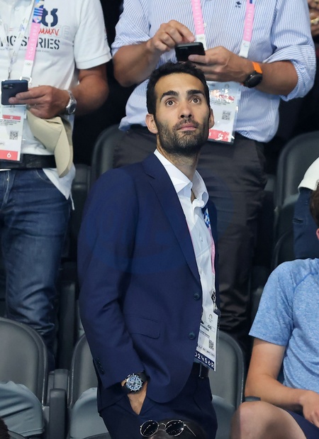 Martin Fourcade - Célébrités assistent à la victoire de Léon Marchand qui devient champion Olympique sur 400 m 4 nages lors des Jeux Olympiques de Paris 2024 (JO) à Paris La Defense Arena à Nanterre le 28 juillet 2024. © Dominique Jacovides-Pierre Perusseau/Bestimage Celebrities attend the victory of Léon Marchand who becomes Olympic champion in the 400m medley during the Paris 2024 Olympic Games (Olympics) at Paris La Defense Arena in Nanterre on July 28, 2024