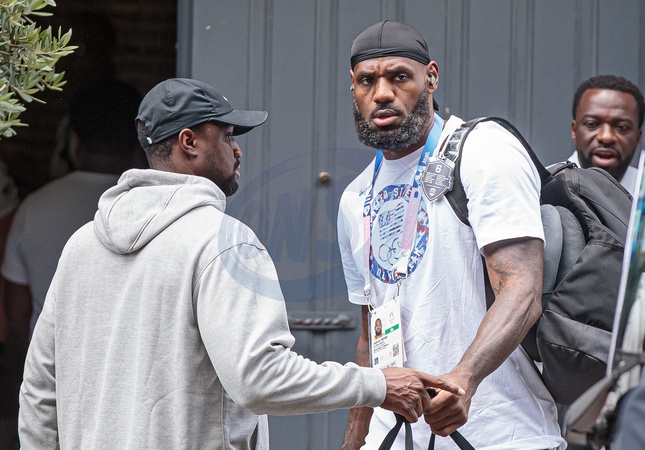 Exclusif - Lebron James et les membres de l'équipe américaine de basketball à la sortie de leur hôtel "L'Hermitage Gantois" à Lille, à l'occasion des Jeux Olympiques Paris 2024