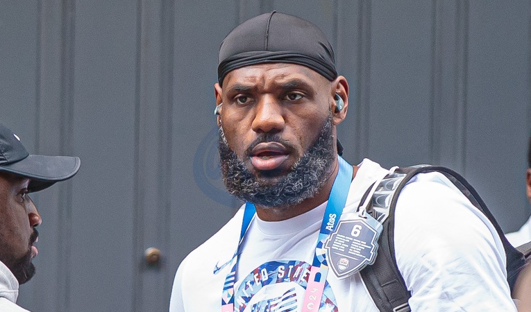 Lebron James i członkowie amerykańskiej drużyny koszykówki opuszczają hotel „L'Hermitage Gantois” w Lille z okazji Igrzysk Olimpijskich Paryż 2024
