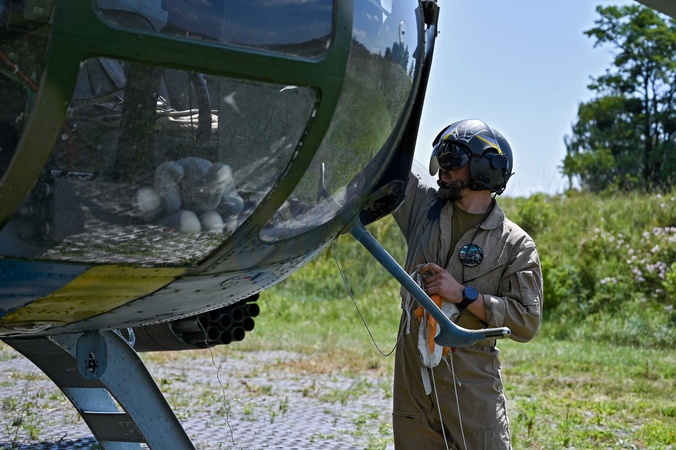 UKRAINE - JULY 11, 2024 - A flight engineer checks the systems of a Mi-8MSB-V assault transport helicopter of the 16th Brody Separate Army Aviation Brigade in Ukraine., Credit:Anastasiia Smolienko / Avalon