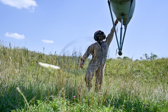 UKRAINE - JULY 11, 2024 - A flight engineer checks the systems of a Mi-8MSB-V assault transport helicopter of the 16th Brody Separate Army Aviation Brigade in Ukraine., Credit:Anastasiia Smolienko / Avalon