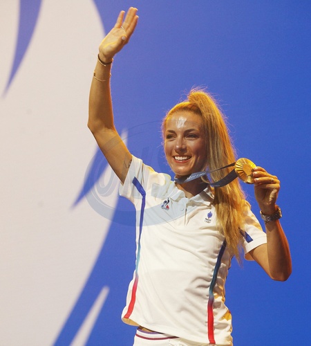 Pauline Ferrand-Prévot, médaille d'or en VTT, au Club France lors des Jeux Olympiques Paris 2024. Le 28 juillet 2024 © Jonathan Rebboah / Panoramic / Bestimage Pauline Ferrand-Prévot, gold medal in MTB, at the Club France during the Olympic Games Paris 2024. July 28, 2024