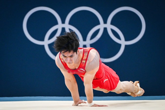 ZHANG Boheng of China during the Artistic Gymnastics, MEN'S TEAM FINAL, Olympic Games Paris 2024 on 29 July 2024 at Bercy Arena in Paris, France. © Matthieu Mirville / DPPI Media / Panoramic /Bestimage