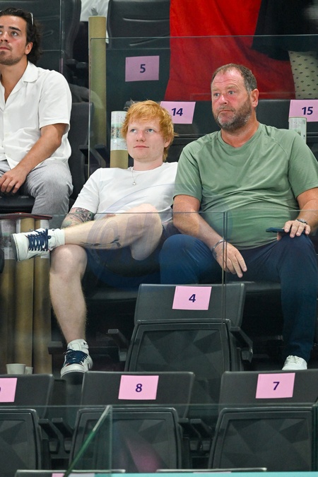 Ed Sheeran assiste aux épreuve de gymnastiques lors des Jeux Olympiques de Paris 2024 (JO) au Palais omnisports Bercy Arena, à Paris, France, le 28 juillet 2024. © Jacovides-Perusseau/Bestimage Ed Sheeran attends the gymnastics event during the Paris 2024 Olympic Games (Olympics) at Palais Omnisports Bercy Arena in Paris, France, July 28, 2024.