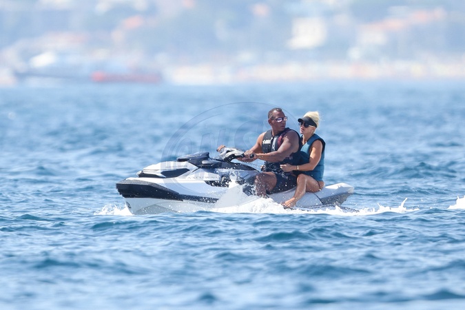 Exclusif - No web - Alex Rodriguez avec sa compagne Jaclyn Cordeiro et ses enfants sur un yacht près de Cannes le 28 juillet 2024. Au programme : séance jet ski et baignade. Exclusive - For Germany call for price - No web - Alex Rodriguez with his partner Jaclyn Cordeiro and his children on a yacht near Cannes on July 28, 2024. On the program: jet ski session and swimming.