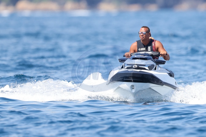 Exclusif - No web - Alex Rodriguez avec sa compagne Jaclyn Cordeiro et ses enfants sur un yacht près de Cannes le 28 juillet 2024. Au programme : séance jet ski et baignade. Exclusive - For Germany call for price - No web - Alex Rodriguez with his partner Jaclyn Cordeiro and his children on a yacht near Cannes on July 28, 2024. On the program: jet ski session and swimming.