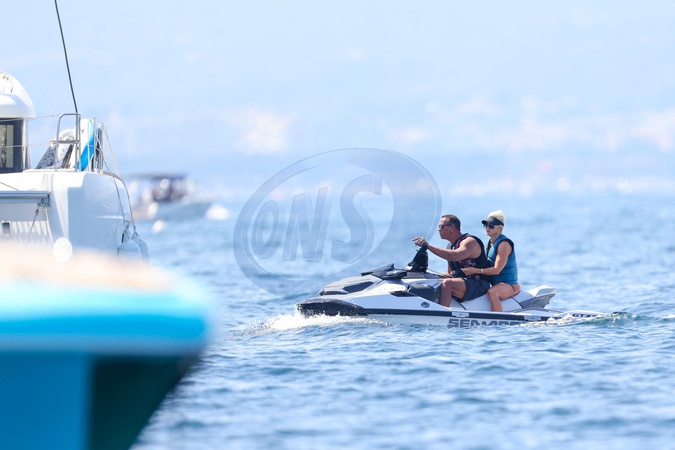 Exclusif - No web - Alex Rodriguez avec sa compagne Jaclyn Cordeiro et ses enfants sur un yacht près de Cannes le 28 juillet 2024. Au programme : séance jet ski et baignade. Exclusive - For Germany call for price - No web - Alex Rodriguez with his partner Jaclyn Cordeiro and his children on a yacht near Cannes on July 28, 2024. On the program: jet ski session and swimming.