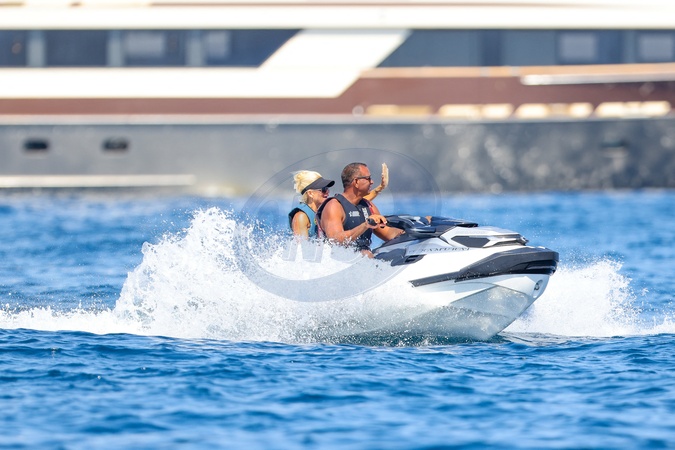 Exclusif - No web - Alex Rodriguez avec sa compagne Jaclyn Cordeiro et ses enfants sur un yacht près de Cannes le 28 juillet 2024. Au programme : séance jet ski et baignade. Exclusive - For Germany call for price - No web - Alex Rodriguez with his partner Jaclyn Cordeiro and his children on a yacht near Cannes on July 28, 2024. On the program: jet ski session and swimming.