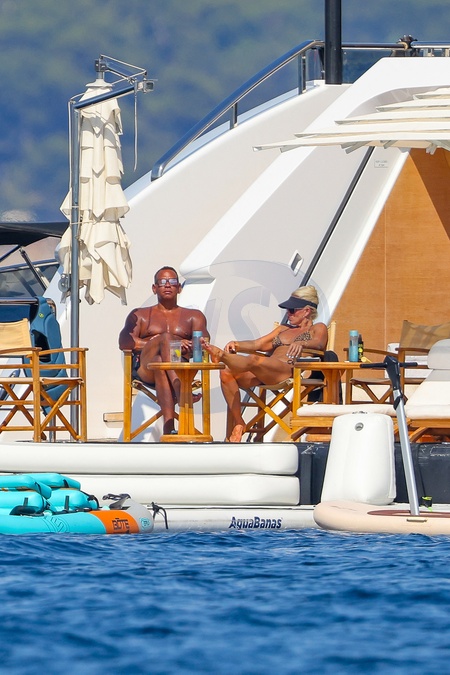 Exclusif - No web - Alex Rodriguez avec sa compagne Jaclyn Cordeiro et ses enfants sur un yacht près de Cannes le 28 juillet 2024. Au programme : séance jet ski et baignade. Exclusive - For Germany call for price - No web - Alex Rodriguez with his partner Jaclyn Cordeiro and his children on a yacht near Cannes on July 28, 2024. On the program: jet ski session and swimming.