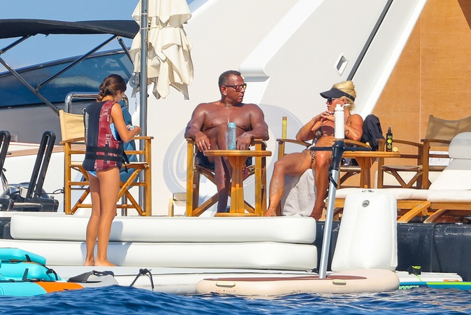 Exclusif - No web - Alex Rodriguez avec sa compagne Jaclyn Cordeiro et ses enfants sur un yacht près de Cannes le 28 juillet 2024. Au programme : séance jet ski et baignade. Exclusive - For Germany call for price - No web - Alex Rodriguez with his partner Jaclyn Cordeiro and his children on a yacht near Cannes on July 28, 2024. On the program: jet ski session and swimming.