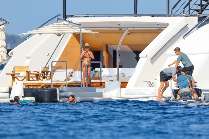 Exclusif - No web - Alex Rodriguez avec sa compagne Jaclyn Cordeiro et ses enfants sur un yacht près de Cannes le 28 juillet 2024. Au programme : séance jet ski et baignade. Exclusive - For Germany call for price - No web - Alex Rodriguez with his partner Jaclyn Cordeiro and his children on a yacht near Cannes on July 28, 2024. On the program: jet ski session and swimming.