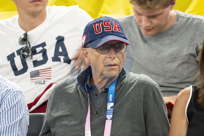 Bill Gate en tribunes aux épreuves de gymnastiques lors des Jeux Olympiques de Paris 2024 (JO) au Palais omnisports Bercy Arena, à Paris, France, le 28 juillet 2024. © Jacovides-Perusseau/Bestimage Celebs attend the gymnastics event during the Paris 2024 Olympic Games (Olympics) at Palais Omnisports Bercy Arena in Paris, France, July 28, 2024.