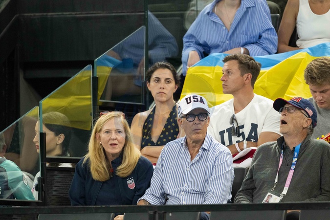 Bill Gate en tribunes aux épreuves de gymnastiques lors des Jeux Olympiques de Paris 2024 (JO) au Palais omnisports Bercy Arena, à Paris, France, le 28 juillet 2024. © Jacovides-Perusseau/Bestimage Celebs attend the gymnastics event during the Paris 2024 Olympic Games (Olympics) at Palais Omnisports Bercy Arena in Paris, France, July 28, 2024.