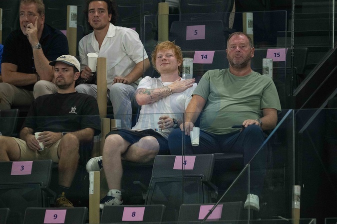Ed Sheeran assiste aux épreuve de gymnastiques lors des Jeux Olympiques de Paris 2024 (JO) au Palais omnisports Bercy Arena, à Paris, France, le 28 juillet 2024. © Jacovides-Perusseau/Bestimage Ed Sheeran attends the gymnastics event during the Paris 2024 Olympic Games (Olympics) at Palais Omnisports Bercy Arena in Paris, France, July 28, 2024.