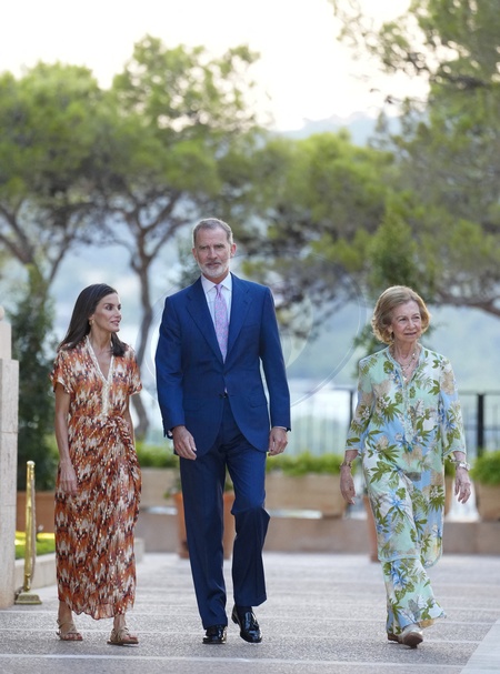 Les membres de la famille royale espagnole organisent leur réception estivale annuelle au palais de Marivent à Palma de Majorque, le 29 juillet 2024. King Felipe VI, Queen Letizia, Emerit Queen Sofia - Spanish Royals host their annual summer reception at Marivent Palace. Palma de Mallorca - July 29, 20224
