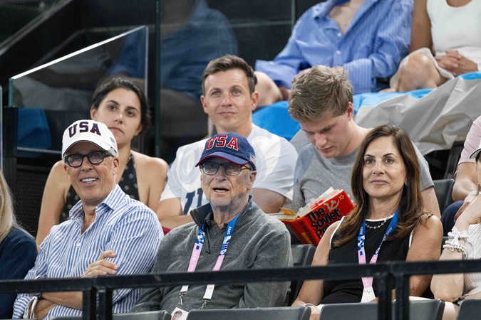 Bill Gates et son amie Paula Hurd - Célébrités assistent aux épreuves de gymnastiques lors des Jeux Olympiques de Paris 2024 (JO) au Palais omnisports Bercy Arena, à Paris le 29 juillet 2024. © Jacovides-Perusseau/Bestimage Celebrities attend the gymnastics events during the Paris 2024 Olympic Games (Olympics) at Palais Omnisports Bercy Arena in Paris on July 29, 2024.