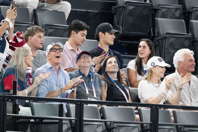 Bill Gates et son amie Paula Hurd - Célébrités assistent aux épreuves de gymnastiques lors des Jeux Olympiques de Paris 2024 (JO) au Palais omnisports Bercy Arena, à Paris le 29 juillet 2024. © Jacovides-Perusseau/Bestimage Celebrities attend the gymnastics events during the Paris 2024 Olympic Games (Olympics) at Palais Omnisports Bercy Arena in Paris on July 29, 2024.