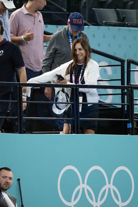 Bill Gates et son amie Paula Hurd - Célébrités assistent aux épreuves de gymnastiques lors des Jeux Olympiques de Paris 2024 (JO) au Palais omnisports Bercy Arena, à Paris le 29 juillet 2024. © Jacovides-Perusseau/Bestimage Celebrities attend the gymnastics events during the Paris 2024 Olympic Games (Olympics) at Palais Omnisports Bercy Arena in Paris on July 29, 2024.