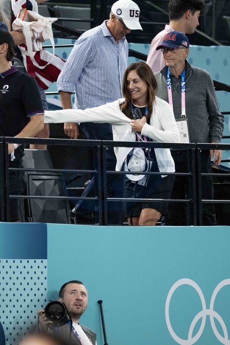 Bill Gates et son amie Paula Hurd - Célébrités assistent aux épreuves de gymnastiques lors des Jeux Olympiques de Paris 2024 (JO) au Palais omnisports Bercy Arena, à Paris le 29 juillet 2024. © Jacovides-Perusseau/Bestimage Celebrities attend the gymnastics events during the Paris 2024 Olympic Games (Olympics) at Palais Omnisports Bercy Arena in Paris on July 29, 2024.