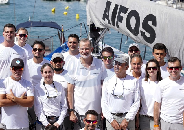 Le roi Felipe VI d'Espagne participe à la 42ème Copa del Rey à Palma de Majorque, le 30 juillet 2024. © Lalo Yasky / Bestimage King Felipe Vi seen on board of the AIFOS the Day 1 of the Copa del Rey sailing trophy during his summer holidays in Mallorca. Palma de Mallorca - July 30, 2024