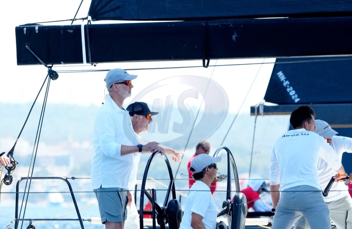 Le roi Felipe VI d'Espagne participe à la 42ème Copa del Rey à Palma de Majorque, le 30 juillet 2024. © Lalo Yasky / Bestimage King Felipe Vi seen on board of the AIFOS the Day 1 of the Copa del Rey sailing trophy during his summer holidays in Mallorca. Palma de Mallorca - July 30, 2024