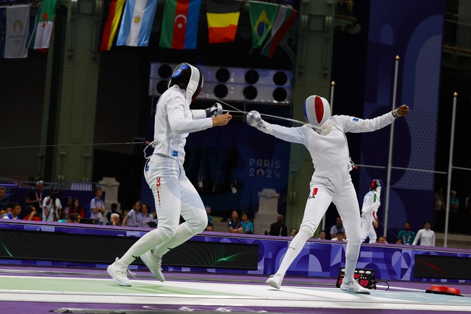 Epreuve d’Escrime par équipe femme à l'épée lors des Jeux Olympiques de Paris 2024 (JO) au Grand Palais