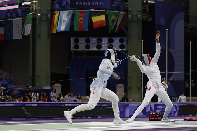 Epreuve d’Escrime par équipe femme à l'épée lors des Jeux Olympiques de Paris 2024 (JO) au Grand Palais