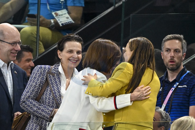 Juliette Binoche et Nathalie Portman - Célébrités assistent aux épreuves de gymnastique lors des Jeux Olympiques de Paris 2024 (JO) au Palais omnisports Bercy Arena, à Paris, France, le 30 juillet 2024. © Jacovides-Perusseau/Bestimage Celebrities attend the gymnastics events during the Paris 2024 Olympic Games (Olympics) at Palais Omnisports Bercy Arena in Paris on July 30, 2024.