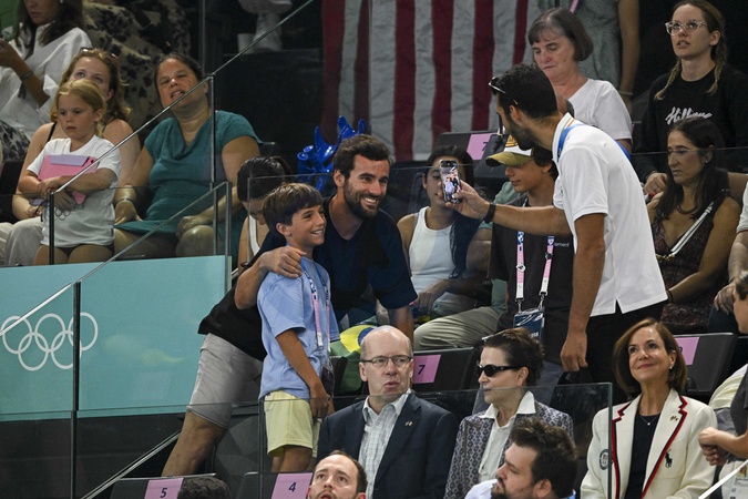 Martin Fourcade - Célébrités assistent aux épreuves de gymnastique lors des Jeux Olympiques de Paris 2024 (JO) au Palais omnisports Bercy Arena, à Paris, France, le 30 juillet 2024. © Jacovides-Perusseau/Bestimage Martin Fourcade Celebrities attend the gymnastics events during the Paris 2024 Olympic Games (Olympics) at Palais Omnisports Bercy Arena in Paris on July 30, 2024.