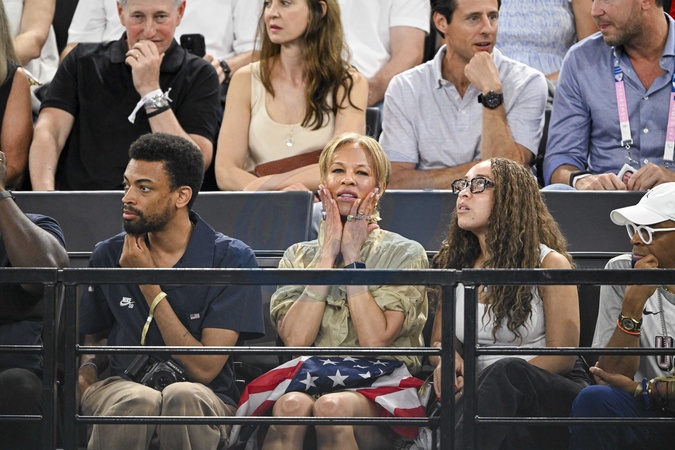 Célébrités assistent aux épreuves de gymnastique lors des Jeux Olympiques de Paris 2024 (JO) au Palais omnisports Bercy Arena, à Paris