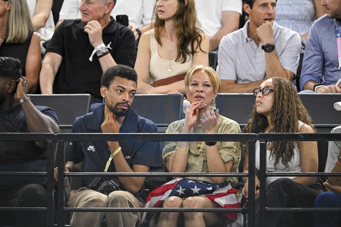 Jackson Lee , Tonya Lewis Lee et Satchel Lee - Célébrités assistent aux épreuves de gymnastique lors des Jeux Olympiques de Paris 2024 (JO) au Palais omnisports Bercy Arena, à Paris, France, le 30 juillet 2024. © Jacovides-Perusseau/Bestimage Jackson Lee , Tonya Lewis Lee and Satchel Lee Celebrities attend the gymnastics events during the Paris 2024 Olympic Games (Olympics) at Palais Omnisports Bercy Arena in Paris on July 30, 2024.