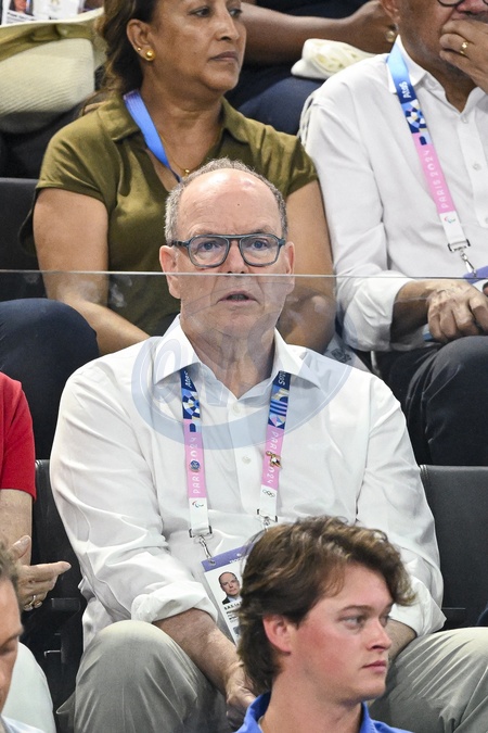 Prince Albert - Célébrités assistent aux épreuves de gymnastique lors des Jeux Olympiques de Paris 2024 (JO) au Palais omnisports Bercy Arena, à Paris, France, le 30 juillet 2024. © Jacovides-Perusseau/Bestimage Prince Albert Celebrities attend the gymnastics events during the Paris 2024 Olympic Games (Olympics) at Palais Omnisports Bercy Arena in Paris on July 30, 2024.