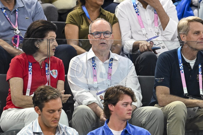 Prince Albert - Célébrités assistent aux épreuves de gymnastique lors des Jeux Olympiques de Paris 2024 (JO) au Palais omnisports Bercy Arena, à Paris, France, le 30 juillet 2024. © Jacovides-Perusseau/Bestimage Prince Albert Celebrities attend the gymnastics events during the Paris 2024 Olympic Games (Olympics) at Palais Omnisports Bercy Arena in Paris on July 30, 2024.