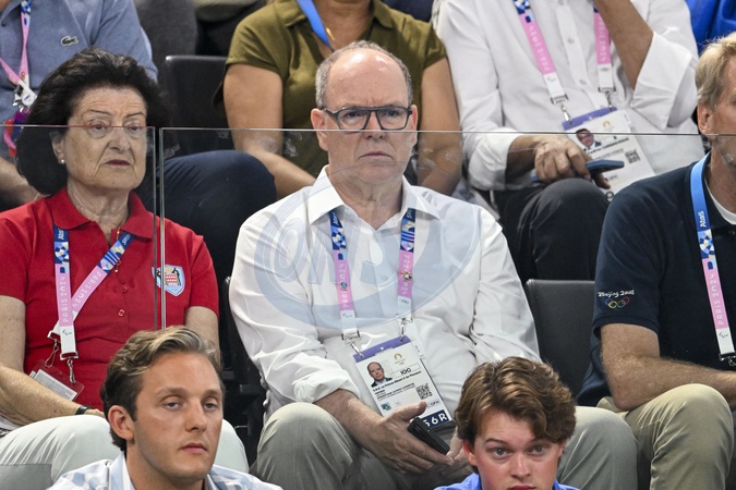 Prince Albert - Célébrités assistent aux épreuves de gymnastique lors des Jeux Olympiques de Paris 2024 (JO) au Palais omnisports Bercy Arena, à Paris, France, le 30 juillet 2024. © Jacovides-Perusseau/Bestimage Prince Albert Celebrities attend the gymnastics events during the Paris 2024 Olympic Games (Olympics) at Palais Omnisports Bercy Arena in Paris on July 30, 2024.