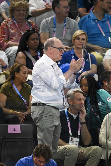 Prince Albert - Célébrités assistent aux épreuves de gymnastique lors des Jeux Olympiques de Paris 2024 (JO) au Palais omnisports Bercy Arena, à Paris, France, le 30 juillet 2024. © Jacovides-Perusseau/Bestimage Prince Albert Celebrities attend the gymnastics events during the Paris 2024 Olympic Games (Olympics) at Palais Omnisports Bercy Arena in Paris on July 30, 2024.