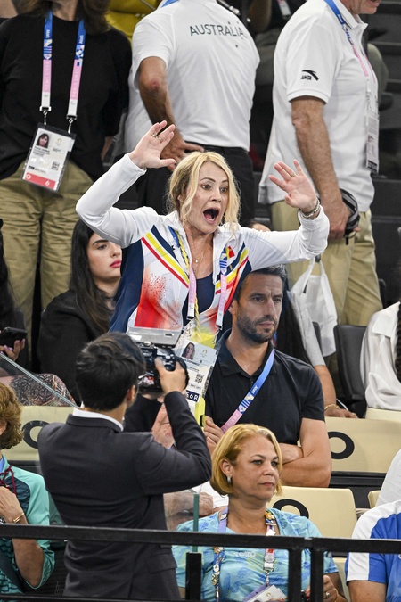 Nadia Comăneci - Célébrités assistent aux épreuves de gymnastique lors des Jeux Olympiques de Paris 2024 (JO) au Palais omnisports Bercy Arena, à Paris, France, le 30 juillet 2024. © Jacovides-Perusseau/Bestimage Nadia Comăneci Celebrities attend the gymnastics events during the Paris 2024 Olympic Games (Olympics) at Palais Omnisports Bercy Arena in Paris on July 30, 2024.