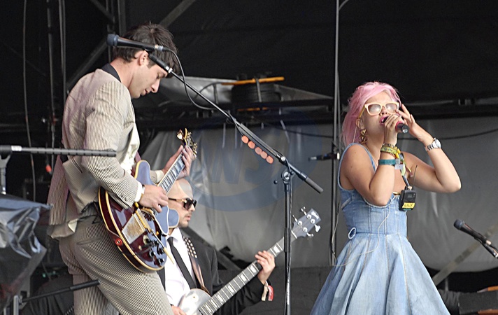 Lily Allen i Mark Ronson wystepuja podczas Festiwalu Glastonbury, Somerset