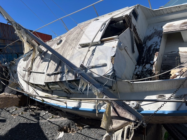 Destroyed yacht from tsunami seismic sea wave., Credit:Rafael Ben-Ari / Avalon