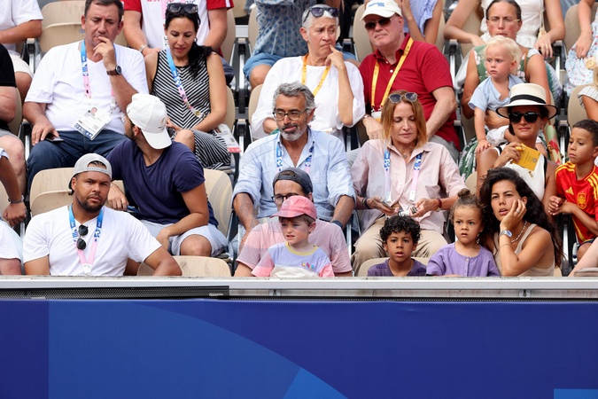 Jo-Wilfried Tsonga en famille - Célébrités assistent à la victoire de Rafael Nadal et Carlos Alcaraz face à T. Griekspoor et W. Koolhof lors des Jeux Olympiques de Paris2024 (JO) le 30 juillet 2024. © Jacovides-Perusseau/Bestimage Celebrities attend Rafael Nadal and Carlos Alcaraz's victory over T. Griekspoor and W. Koolhof at the Paris2024 Olympic Games (Olympics) on July 30, 2024
