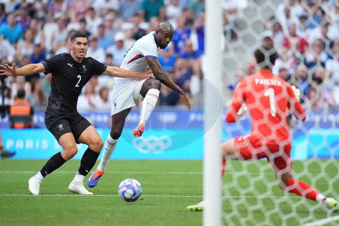 Jean-Philippe Mateta (France), Michael Boxall (New Zealand) and Alex Paulsen (New Zealand), Football , France vs New Zealand during the Olympic Games Paris 2024. Photo Norbert Scanella - DPPI Media / Panoramic