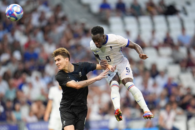 Arnaud Kalimuendo (France) and Tyler Bindon (New Zealand), Football , France vs New Zealand during the Olympic Games Paris 2024. Photo Norbert Scanella - DPPI Media / Panoramic