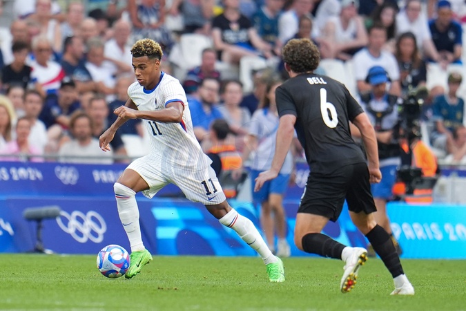 Désiré Doué (France)Désiré Doué (France) and Joe Bell (New Zealand), Football , France vs New Zealand during the Olympic Games Paris 2024. Photo Norbert Scanella - DPPI Media / Panoramic
