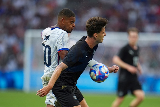 Andy Diouf (France) and Matthew Garbett (New Zealand), Football , France vs New Zealand during the Olympic Games Paris 2024. Photo Norbert Scanella - DPPI Media / Panoramic