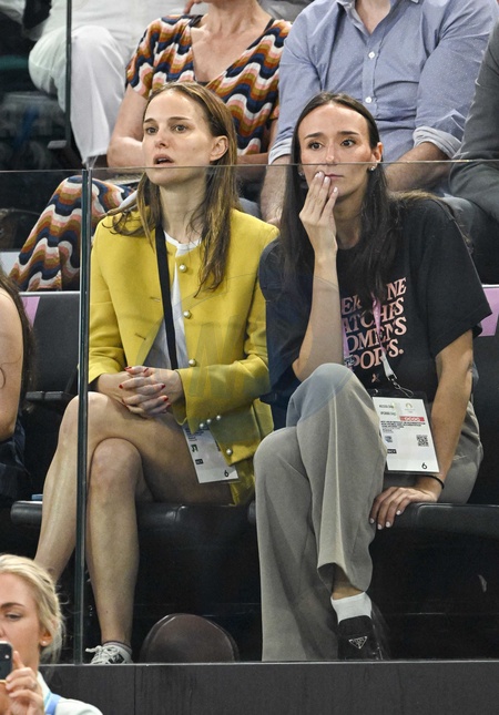 Natalie Portman - Célébrités assistent aux épreuves de gymnastiques lors des Jeux Olympiques de Paris 2024 (JO) au Palais omnisports Bercy Arena, à Paris, France, le 30 juillet 2024. © Jacovides-Perusseau/Bestimage Juliette Binoche and Nathalie Portman, Gabriel Attal Celebrities attend the gymnastics events during the Paris 2024 Olympic Games (Olympics) at Palais Omnisports Bercy Arena in Paris on July 30, 2024.