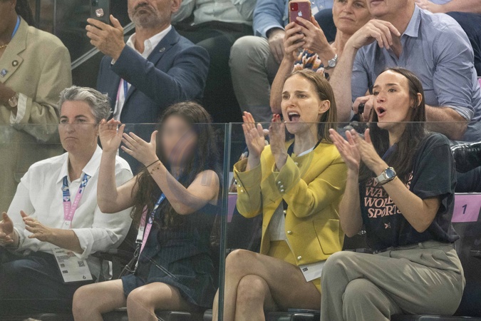 Natalie Portman - - Célébrités assistent aux épreuves de gymnastiques lors des Jeux Olympiques de Paris 2024 (JO) au Palais omnisports Bercy Arena, à Paris, France, le 30 juillet 2024. © Jacovides-Perusseau/Bestimage Juliette Binoche and Nathalie Portman, Gabriel Attal Celebrities attend the gymnastics events during the Paris 2024 Olympic Games (Olympics) at Palais Omnisports Bercy Arena in Paris on July 30, 2024.