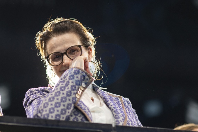 Juliette Binoche - Célébrités assistent aux épreuves de gymnastiques lors des Jeux Olympiques de Paris 2024 (JO) au Palais omnisports Bercy Arena, à Paris, France, le 30 juillet 2024. © Jacovides-Perusseau/Bestimage Juliette Binoche and Nathalie Portman, Gabriel Attal Celebrities attend the gymnastics events during the Paris 2024 Olympic Games (Olympics) at Palais Omnisports Bercy Arena in Paris on July 30, 2024.