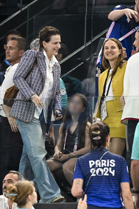 Juliette Binoche, Natalie Portman - Célébrités assistent aux épreuves de gymnastiques lors des Jeux Olympiques de Paris 2024 (JO) au Palais omnisports Bercy Arena, à Paris, France, le 30 juillet 2024. © Jacovides-Perusseau/Bestimage Juliette Binoche and Nathalie Portman, Gabriel Attal Celebrities attend the gymnastics events during the Paris 2024 Olympic Games (Olympics) at Palais Omnisports Bercy Arena in Paris on July 30, 2024.